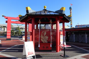 レゴⓇ ニンジャゴー・ワールド入口の鳥居が期間限定でお正月仕様に。しめ縄が取りつけられた大鳥居の先には、東家に大きな鈴が出現。鈴緒を引き、手を合わせ、レゴランドⓇ での初詣をどうぞ。2025 年の皆さまの願い事などが描かれた絵馬カードは、イベント終了後にご祈祷をいたします。