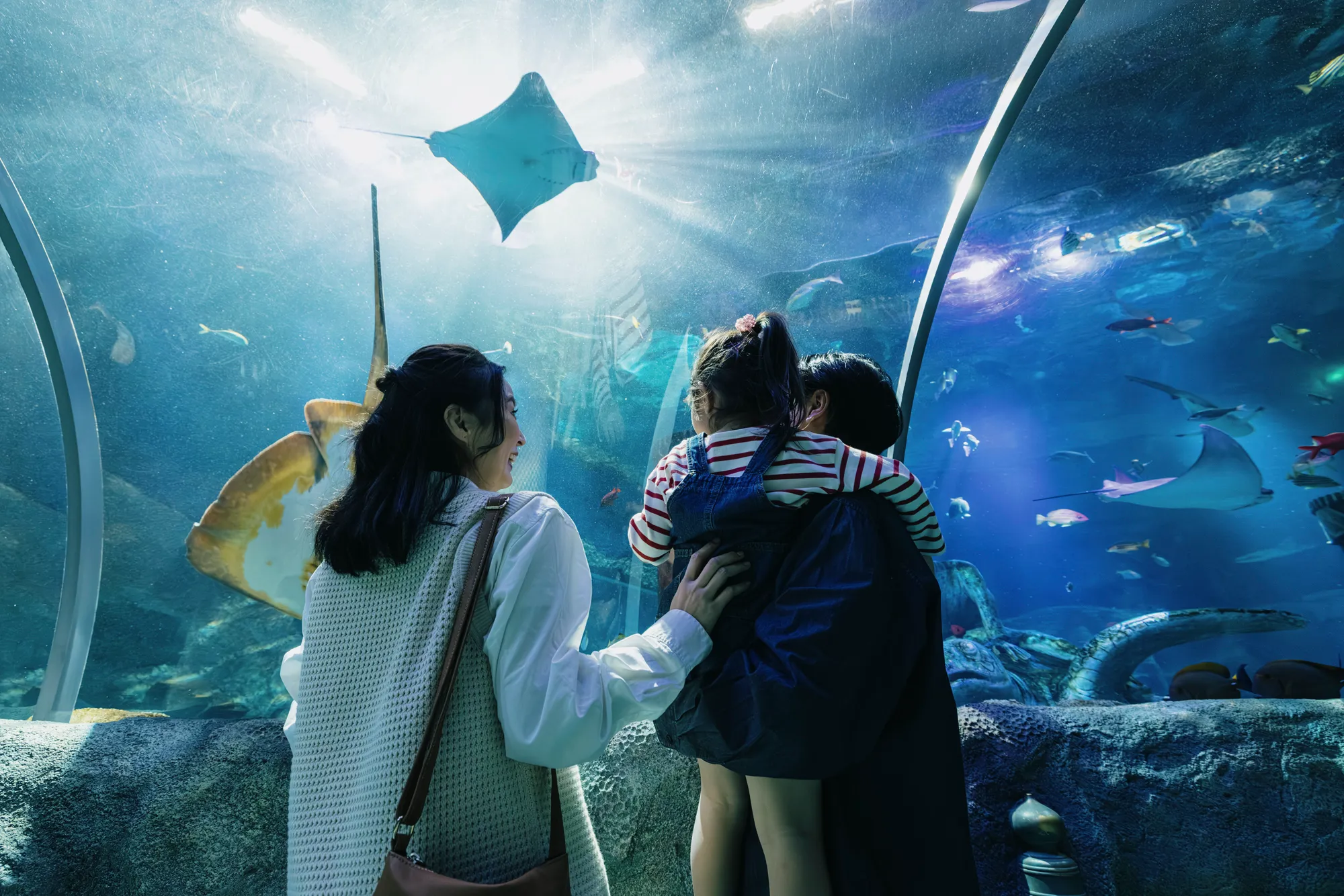 “こどもの成長をおうえんする水族館”をコンセプトに、バックヤード体験ツアー、エイショーやダイバーショー、生き物たちと触れ合うことができるゾーンなど、ゲスト参加型のアクティビティが充実。