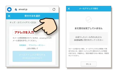 ② 登録画面からメールアドレスを登録