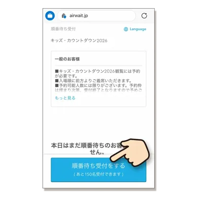 ① 公式ウェブサイトの予約ボタンから予約ページ(airwait.jp)にアクセス