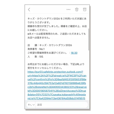 登録後に受信される登録完了メールに記載されているURLをタップし、予約画面へ進みます。