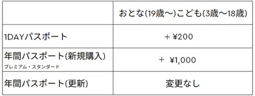 「1DAYパスポート/年間パスポート(プレミアム・スタンダード)」価格改定