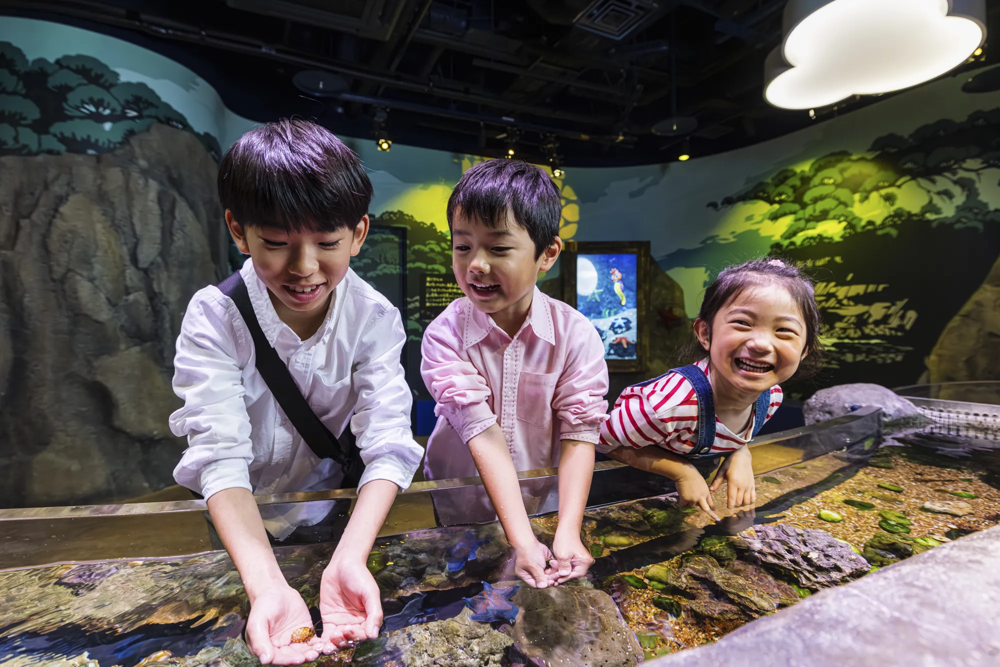“こどもの成長をおうえんする水族館”をコンセプトに、バックヤード体験ツアー、エイショーやダイバーショー、生き物たちと触れ合うことができるゾーンなど、ゲスト参加型のアクティビティが充実。