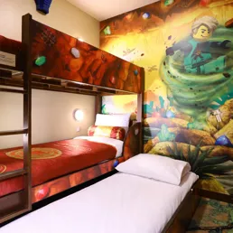 所有客房都附带配备双层床和电视机的儿童房。而且有乐高积木,孩子们可以尽情玩耍。